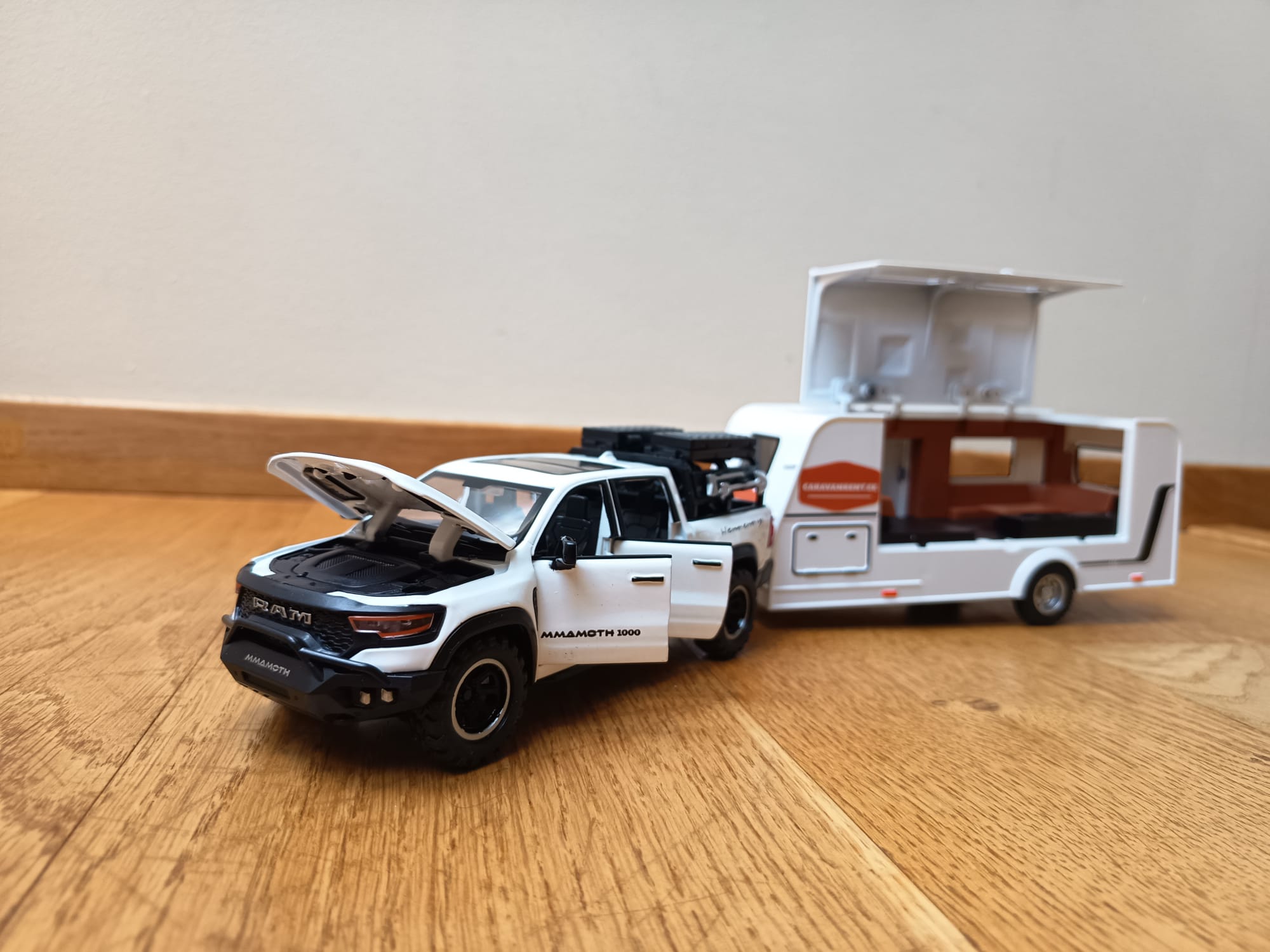 Mudelauto Mercedes-Benz G63 AMG koos haagissuvilaga Värvus: must Skaala: 1:32 Avatavad uksed ja liikuvad detailid…