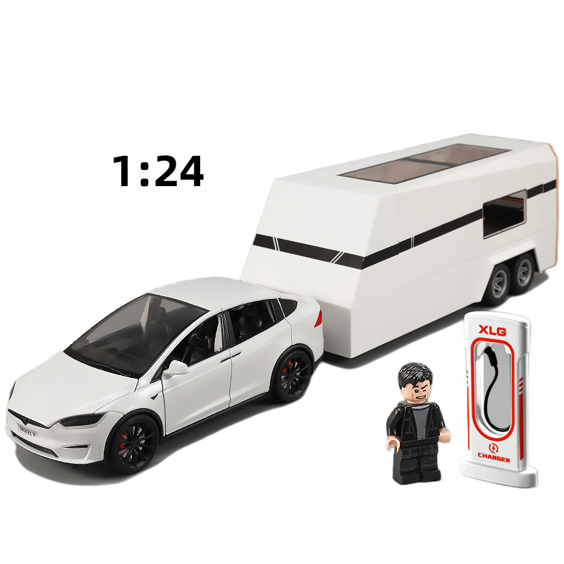 Mudelauto Tesla model X koos haagissuvilaga